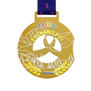 Creamos medallas en cualquier forma, con impresión UV única y grabado, perfectamente adaptadas al tema de tu carrera.