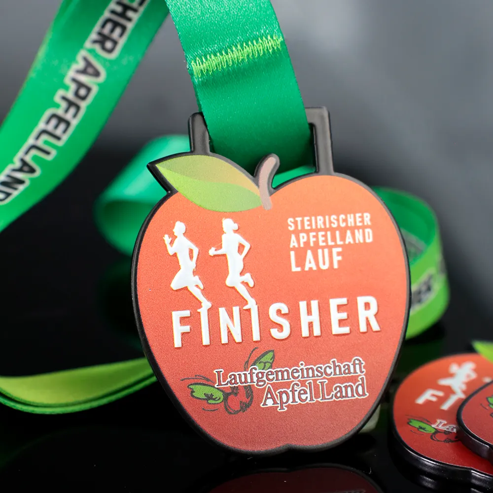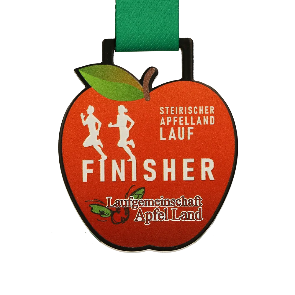 Una medalla personalizada de carrera para los participantes del Steirischer Apfelland Lauf es un recuerdo único para los entusiastas del running. Esta medalla tiene forma de manzana, haciendo referencia a la región de Apfelland y su tradición frutícola.