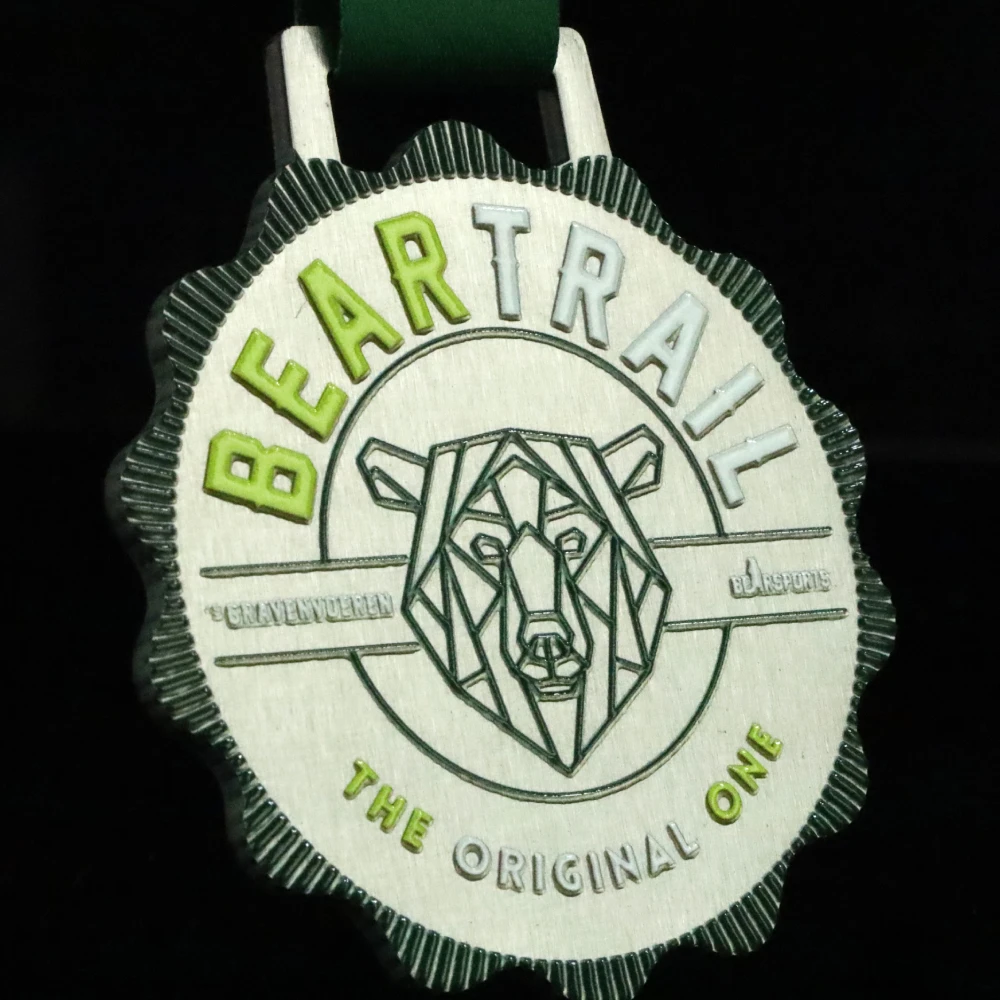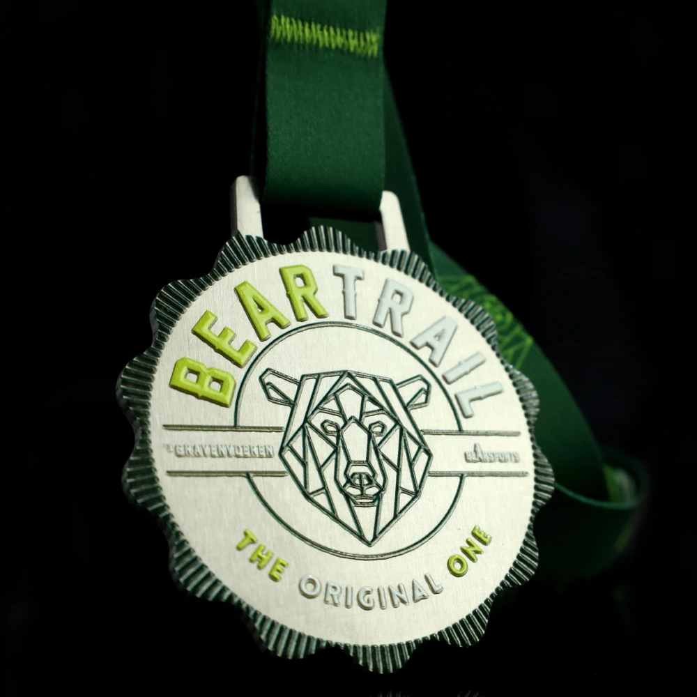 La Polar Bear Trail es una de las carreras organizadas por Bear Sports. Esta ruta invernal fue un recorrido lleno de paisajes pintorescos y ascensos difíciles. Por ello, sus participantes tuvieron que prepararse muy bien para poder llegar a la meta y recibir un premio conmemorativo. Por esta razón, las medallas para los mejores debían cumplir todas las expectativas de los corredores. En Winmed, nos aseguramos de que las medallas de acero que preparamos para este evento reflejaran el carácter combativo de la competición. Las medallas para carrera que creamos tienen una forma redonda con bordes ondulados. Destacan por su color plateado, que es el fondo perfecto para una impresión en color. El conjunto se caracteriza por un diseño moderno, fuertemente acentuado por la decoración del oso en la parte central de la medalla. La medalla también es coherente en estilo con otros premios incluidos en los eventos organizados por Bear Sports.
