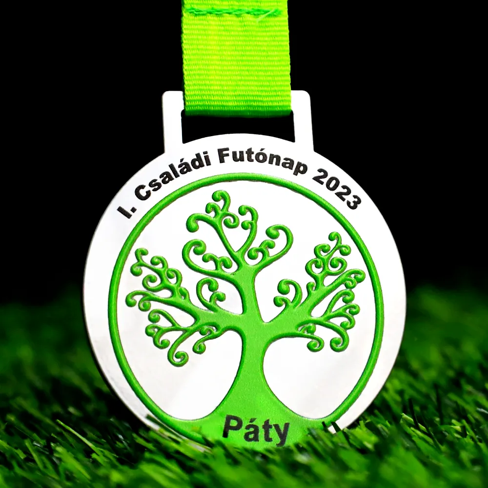 Családi Futónap, o Family Running Day, es un evento especial que reúne a corredores de distintas generaciones. Como fabricantes de medallas para esta ocasión, pusimos todo nuestro empeño en crear un diseño memorable. Por eso, elaboramos las medallas para carrera basadas en un diseño individualizado. Las fabricamos en metal, cortadas con láser en una forma clásica redonda. Esta es una forma universal y elegante que atrae a muchos atletas.