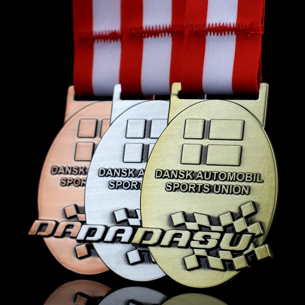 El automovilismo es un campo muy emocionante que cuenta con numerosos aficionados. Algunos de ellos participan regularmente en diversas competiciones con la esperanza de ganar medallas memorables. En Winmed, creamos medallas personalizadas originales que conmemoran los éxitos deportivos. El premio que realizamos para la Dansk Automobil Sports Union es un ejemplo de ello. Son medallas fundidas en tres versiones de colores clásicos: oro, plata y bronce. Cada una de las medallas tiene una forma ovalada con decoraciones distintivas que se pueden sentir fácilmente al tacto. Además, todo el conjunto se completa con una cinta personalizada en un color a juego.
