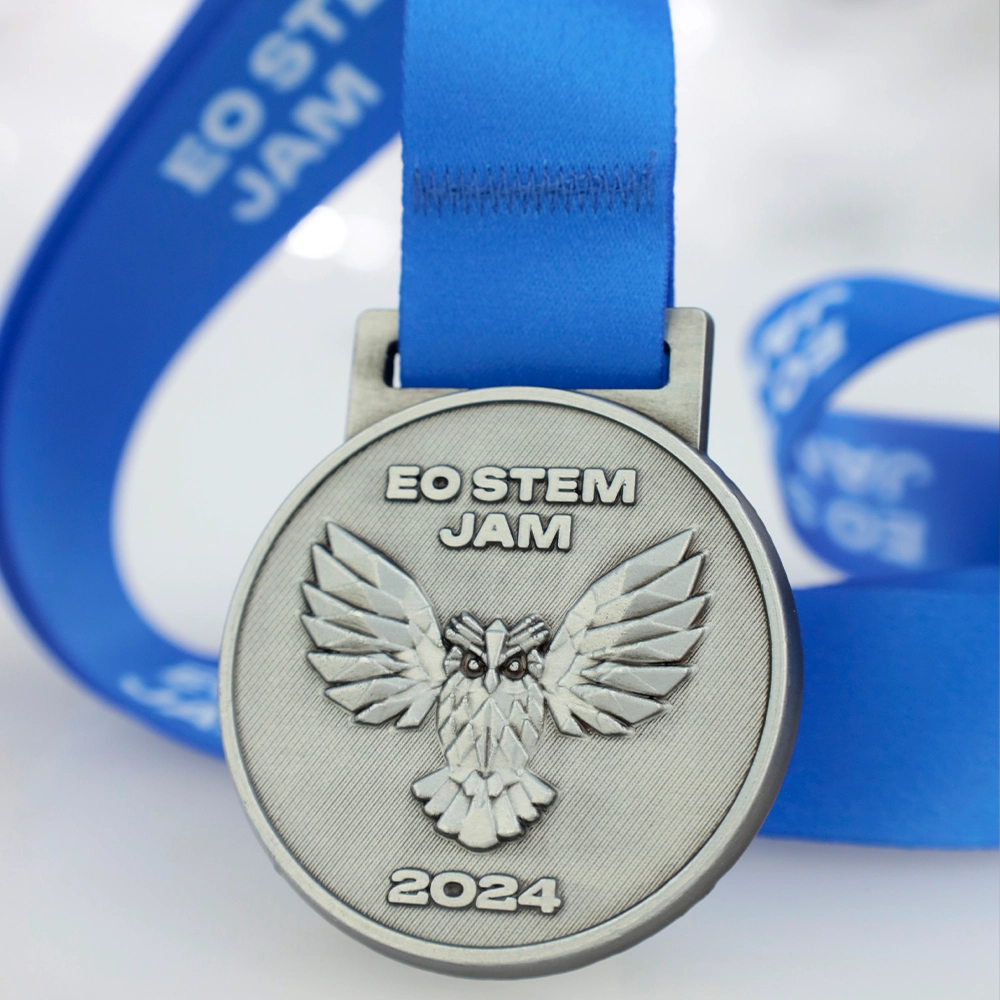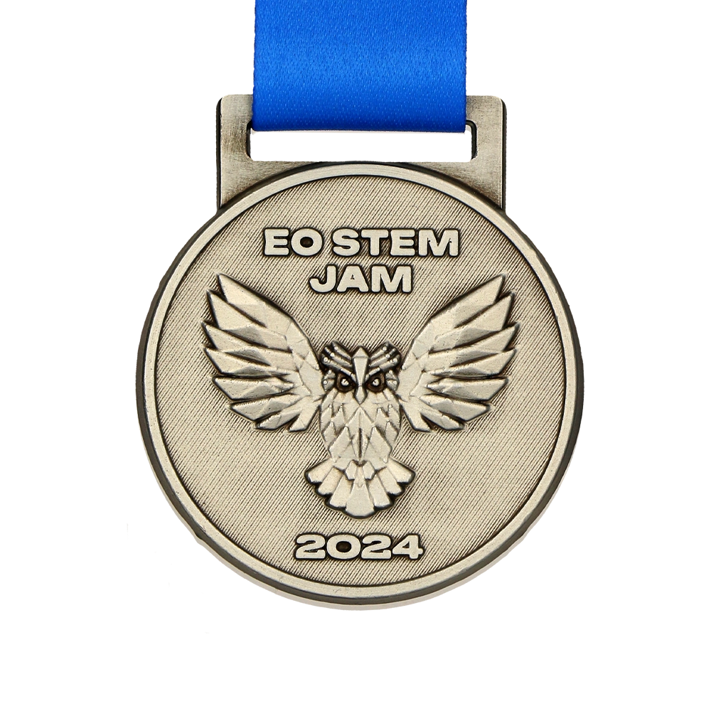 La medalla personalizada para los participantes del EO STEM Jam es un premio único para los asistentes a este evento. Presenta un búho, símbolo del conocimiento. Es una medalla fundida, lo que permite crear cualquier forma y detalle con gran precisión. Es sólida y duradera, convirtiéndose en un recuerdo ideal.