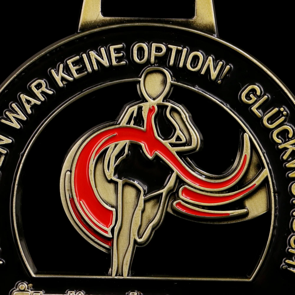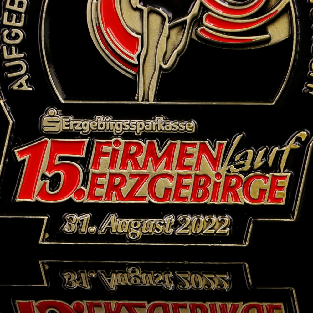 Cada evento de carrera tiene sus características únicas. Gracias a ellas, los participantes recuerdan mejor y por más tiempo su participación. Además, están más dispuestos a participar en ediciones posteriores de la competición. Por eso, al crear medallas para carrera, vale la pena centrarse en la individualidad. El organizador del Firemen Erzgebirge Run lo sabe bien, y por eso encargó a nuestra empresa la preparación de medallas personalizadas por pedido especial. En consulta con el cliente, decidimos fabricar medallas fundidas, caracterizadas por su excepcional durabilidad. Hicimos las medallas en una forma redonda clásica, que enriquecimos con recortes precisos. Estos realzan perfectamente la decoración tridimensional del corredor situada en el centro de la medalla. Los premios tienen un profundo color dorado, que combina a la perfección con el esmalte fuerte y definido en negro y rojo. La presentación completa es extremadamente elegante y de diseño.