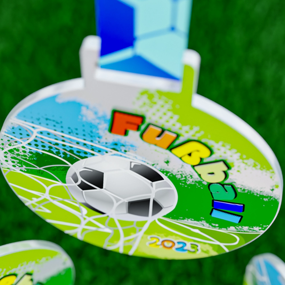 Nuestra empresa ha preparado modernas medallas de fútbol que son redondas, coloridas y están cubiertas con una impresión con un motivo futbolístico. Están fabricadas con acero de la más alta calidad, lo que garantiza su resistencia y durabilidad. Estas llamativas medallas de acero también destacan por su alegre y vibrante gama de colores, que sin duda atraerá a cualquier deportista, especialmente a los más jóvenes. El motivo futbolístico en su superficie añade carácter y energía a las medallas. Todo esto convierte a nuestras medallas en una excelente elección para jóvenes y dinámicos jugadores de fútbol, y en un símbolo único de resistencia y éxito deportivo.