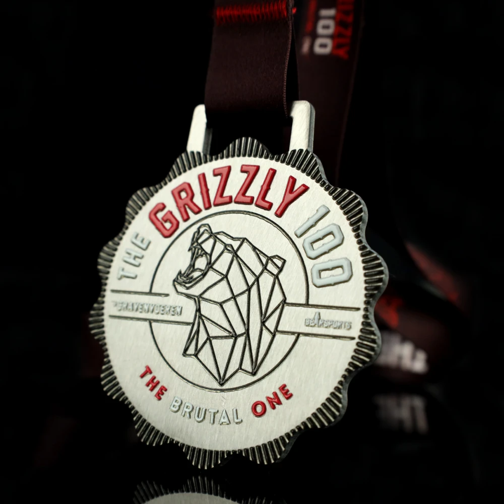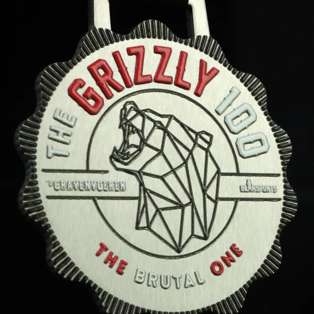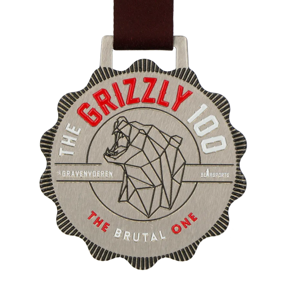 A los atletas les gusta superar sus límites. Esto les permite lograr grandes cosas. El Grizzly 100 es un ejemplo de un desafío de carrera que solo los mejores de los mejores pueden completar. El ganador de la ultramaratón de 100 km será proclamado Campeón de Ultra Trail de los Países Bajos. Un evento tan único se corona con premios preparados individualmente. Se trata de nuestras medallas de acero, que forman parte de una serie creada para el organizador de Bear Sports. Tienen un color plateado y su forma redonda está enriquecida con bordes ondulados. Además, en la superficie de la medalla hay una sobreimpresión con colores expresivos y bien combinados. El llamativo color rojo junto con la decoración del oso es la combinación perfecta que impresiona a primera vista.