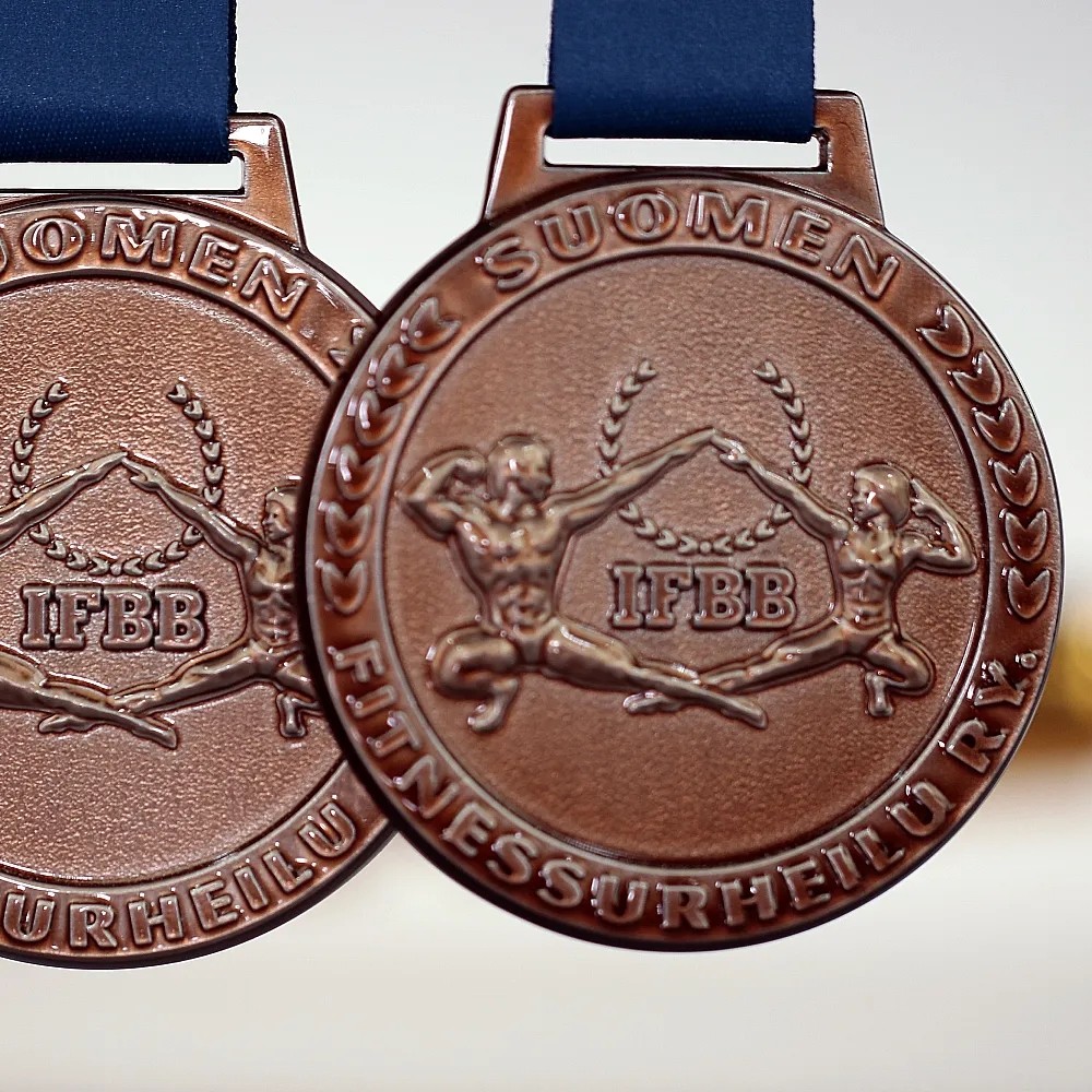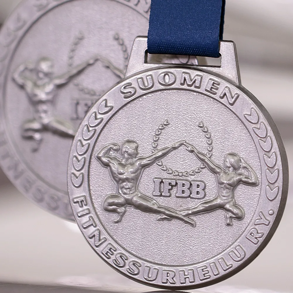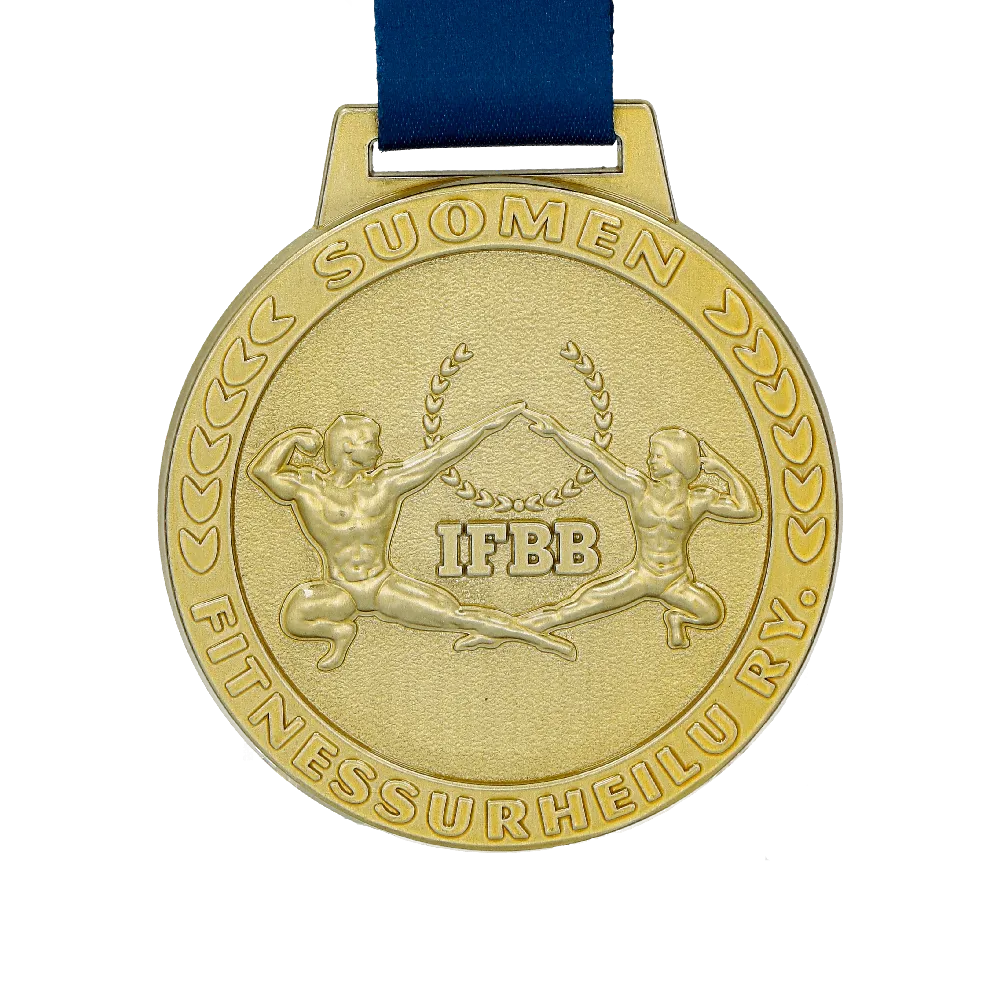 Practicar deporte aporta muchos beneficios y cada disciplina se centra en desarrollar un aspecto diferente. Aquellos que valoran la fuerza y una figura esculpida encontrarán su lugar en los deportes de fuerza. Por eso se organizó el IFBB Fitnessurheilu Ry, donde se entregaron medallas fundidas. Nuestra empresa se encargó de su diseño y producción. Nuestros especialistas crearon medallas únicas con una forma redonda clásica. En la parte central colocamos decoraciones tridimensionales con la figura en poses características de este deporte. La decoración, perfectamente reproducida, está rodeada por un texto con el nombre del evento. Todo el conjunto se complementa con una cinta personalizada que combina perfectamente con las medallas de oro, plata y bronce.