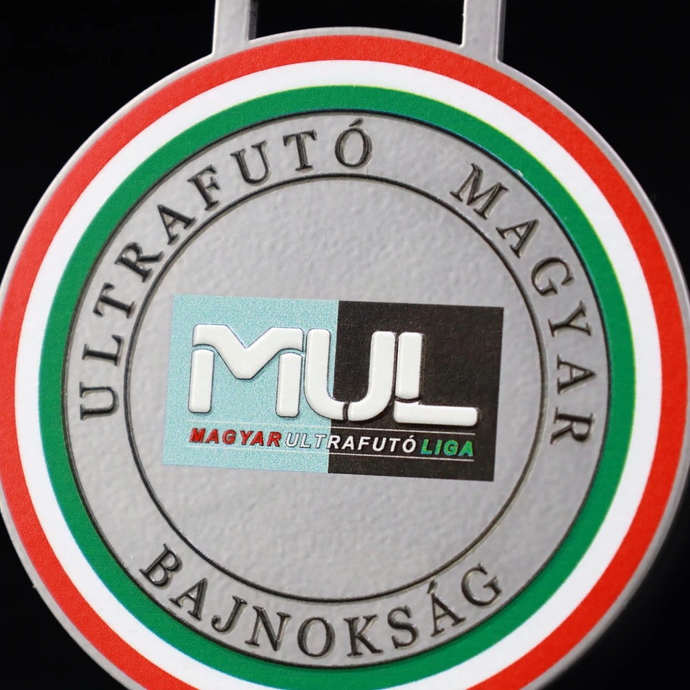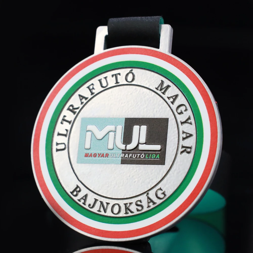 Magyar Ultrafuto Liga es una liga húngara de ultrafondo que se organiza desde 2012. La competición consta de varias etapas, cada una con distinta distancia y recorrido. Los participantes obtienen puntos por completar las carreras individuales, y el ganador de toda la liga recibe medallas conmemorativas para carrera del organizador. Nuestra empresa recibió el encargo de crear estos premios especiales, ya que nos especializamos en diseñar y fabricar medallas personalizadas. En esta ocasión, optamos por un enfoque clásico y preparamos medallas redondas de acero embellecidas con impresión a color. Además, colocamos el colorido logotipo del organizador en el centro, dejando una impresión duradera. Todo esto está disponible en tres versiones de color clásicas, lo que permite al organizador distinguir fácilmente a los ganadores de los tres primeros puestos.