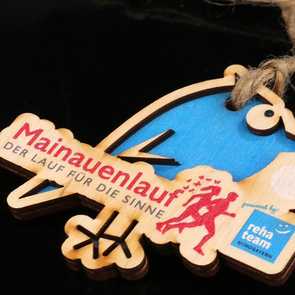 Cada organizador de competiciones deportivas tiene una idea diferente de cómo deben ser los premios para los ganadores. En Winmed, lo entendemos perfectamente. Por eso, tratamos cada pedido de forma individual. Un ejemplo es la medalla de madera que adaptamos a las necesidades de los organizadores de la Mainauenlauf. Esta hermosa medalla para carrera se fabricó con dos piezas encoladas de contrachapado claro. Todo el conjunto tiene una forma inusual que recuerda a un pájaro y en él se imprimió el nombre del evento. Además, lo colgamos en un cordón de yute que combina con el diseño.