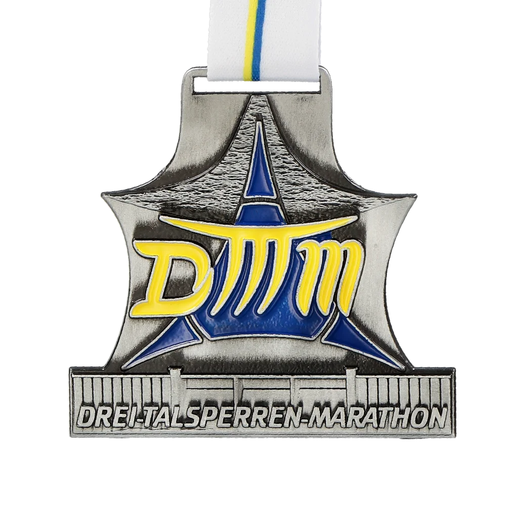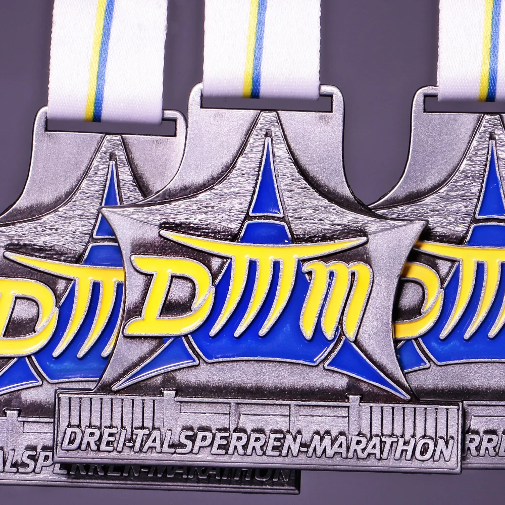 Para los ganadores del Maratón de las Tres Presas, creamos medallas fundidas únicas, rellenas de esmalte de colores. Además, cuentan con numerosas decoraciones tridimensionales, incluido el nombre del evento, para que los corredores recuerden su experiencia en el maratón incluso cuando el tiempo pase.