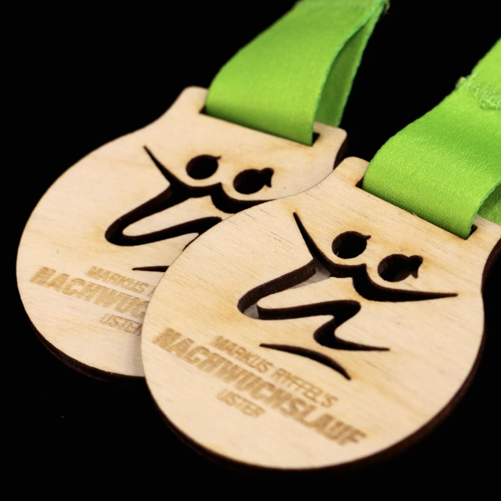 Nuestra empresa cumple estrictamente con estos estándares, utilizando la última tecnología en la producción de medallas y trofeos. Además, ofrecemos a nuestros clientes medallas de madera, que no solo son ecológicas, sino también asequibles. Uno de nuestros proyectos más destacados son las medallas para Markus Ryffel’s Run. Las fabricamos en madera, con un calado realizado con precisión y el nombre grabado. ¡El resultado fue realmente excepcional!