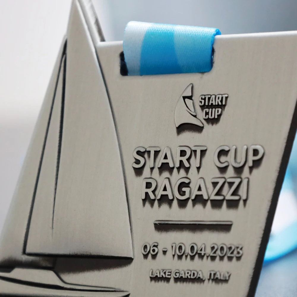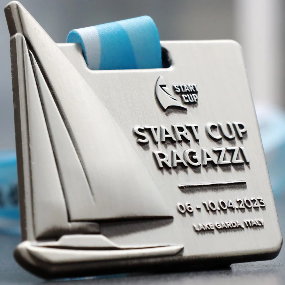 Las extraordinarias medallas personalizadas que creamos para la competición Start Cup Ragazzi son piezas únicas que destacan en la colección de cualquier atleta. Las fabricamos mediante fundición a alta presión, lo que hace que las medallas de acero sean muy resistentes. Además, su acabado en plata otorga un estilo elegante al conjunto, y las decoraciones tridimensionales relacionadas con la vela encajan perfectamente con el ambiente de la competición.
