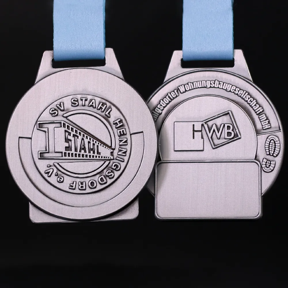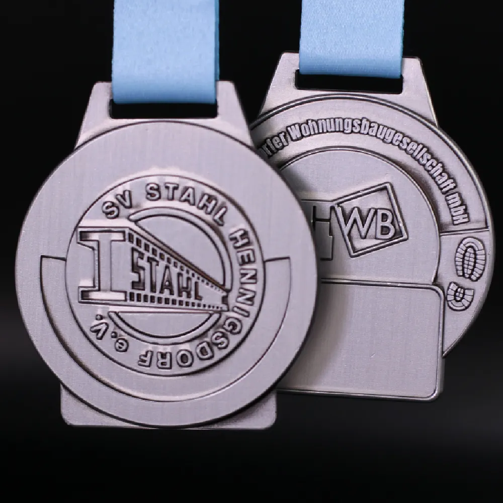 Correr es un deporte muy popular que puede practicar cualquier persona, sin importar la edad. Es una disciplina que aporta alegría y satisfacción, simbolizada por las medallas. En Winmed, creamos cada día medallas para carrera conmemorativas, utilizando la última tecnología. Para la Sv Stahl Sennigsdorf fabricamos originales medallas personalizadas en plata. Estas medallas de doble cara se caracterizan por numerosas decoraciones tridimensionales. Además, en el reverso de la medalla hay un espacio especialmente diseñado para una impresión personalizada.