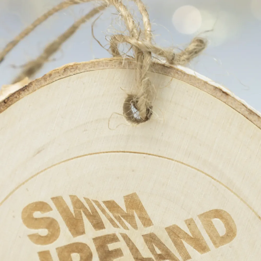 Medalla de madera hecha de abedul, creada para el Swim Fest organizado por Swim Ireland. La estructura natural de la madera resalta el carácter ecológico del premio. El diseño grabado presenta el nombre del evento y un motivo paisajístico. La medalla cuelga de un cordón de yute, complementando perfectamente su aspecto orgánico.