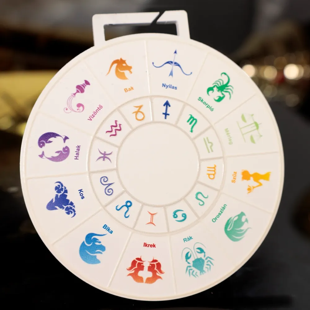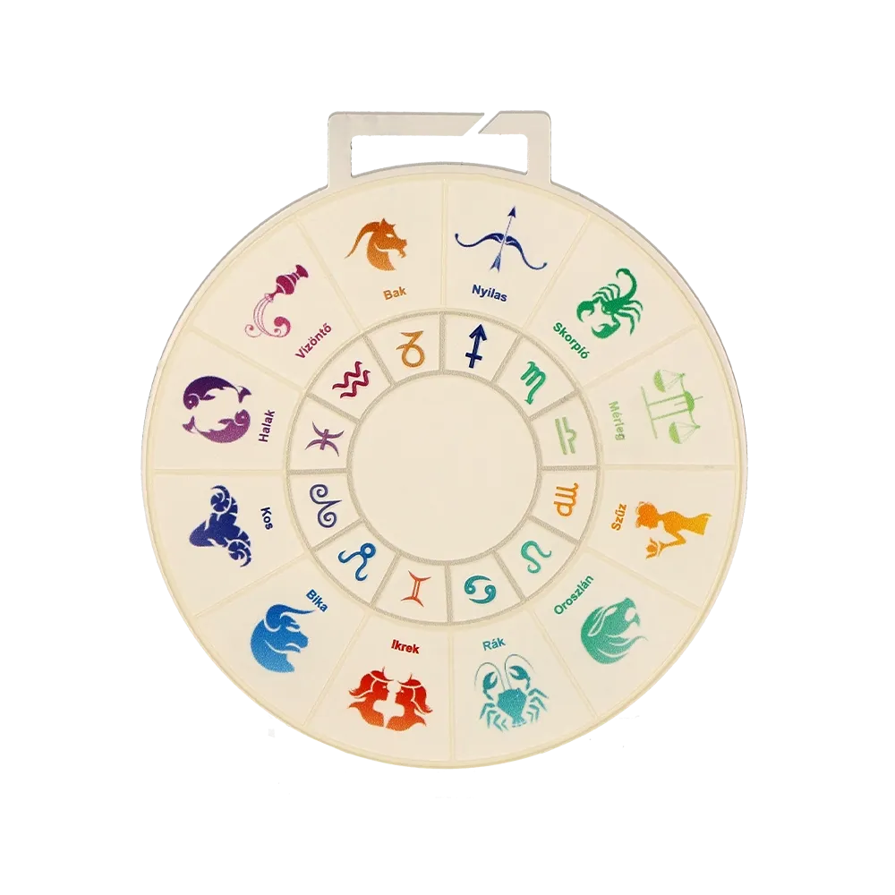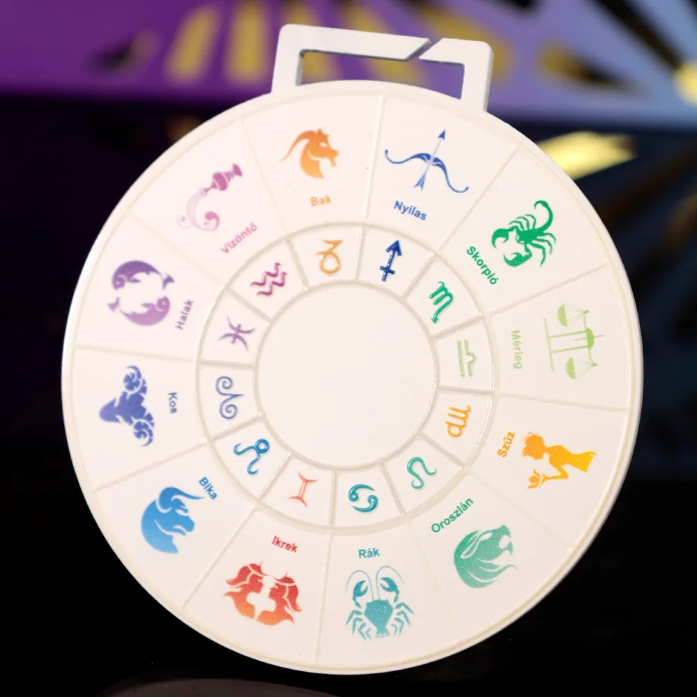 A personalised medal with a zodiac sign motif for participants of a virtual run. It features all zodiac signs in colourful graphics, creating an interesting and symbolic pattern.