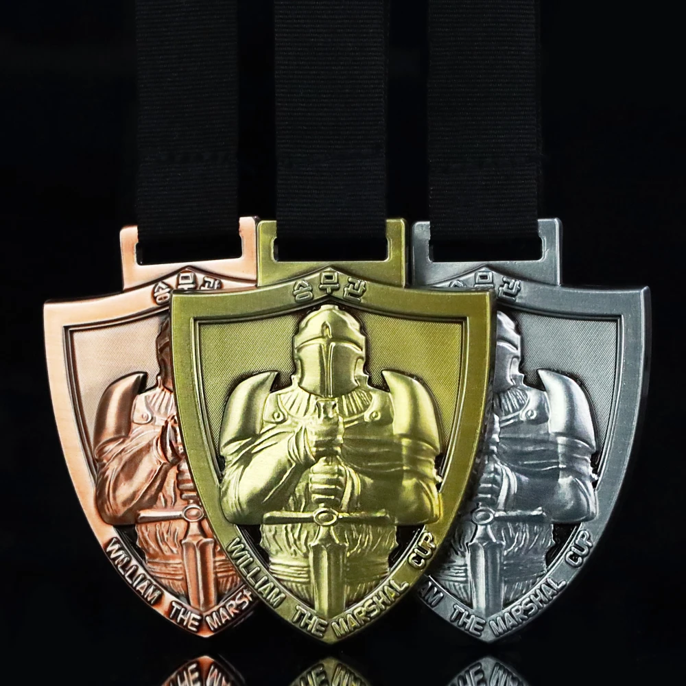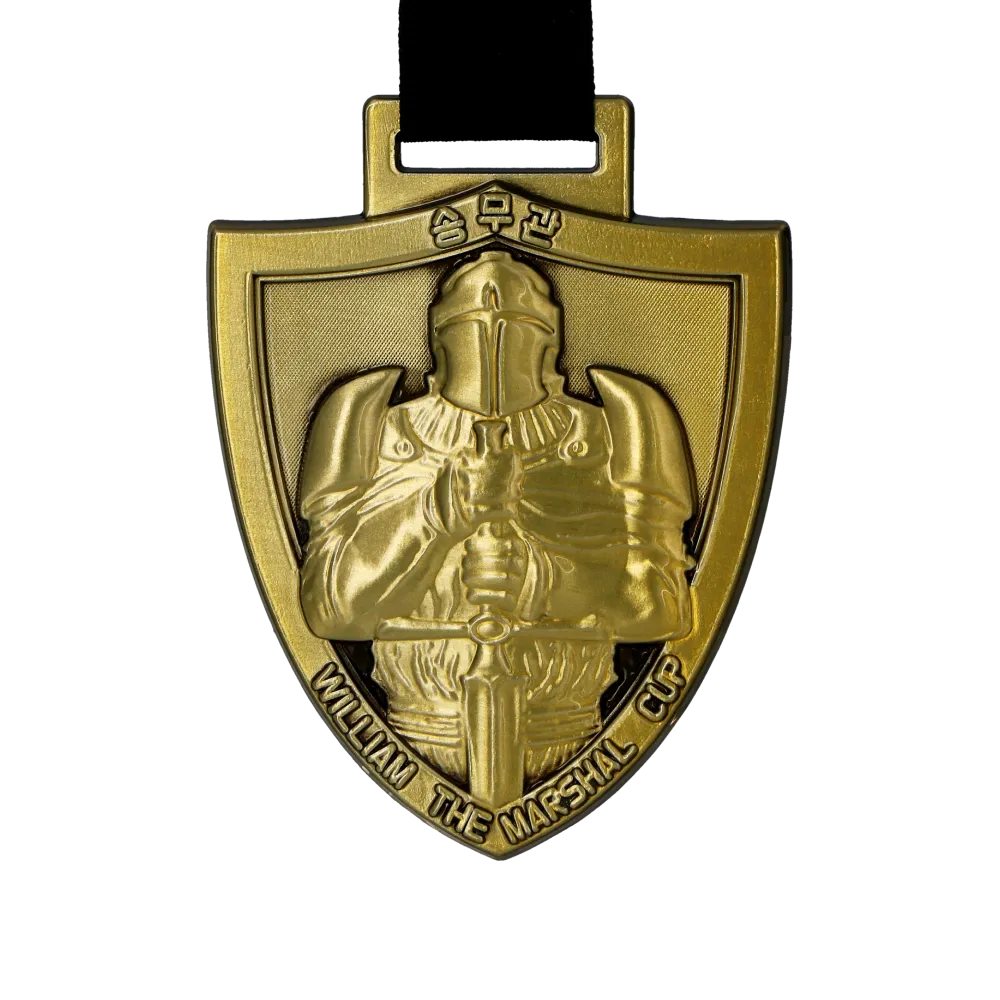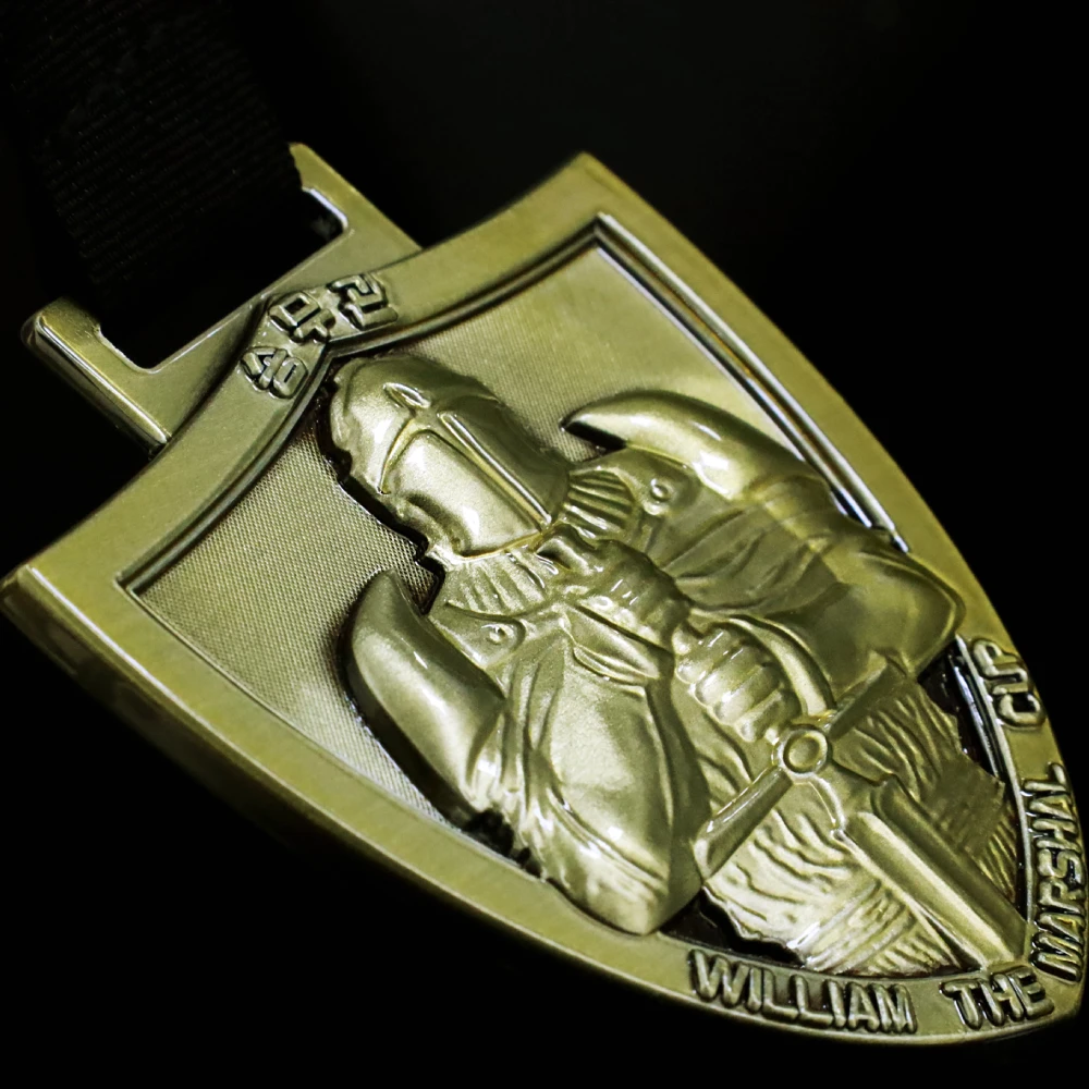 Las artes marciales, como disciplina deportiva, están ganando cada vez más popularidad. Esto se debe a que desarrollan no solo la fuerza física, sino también el carácter. Uno de los eventos que promueve intensamente y ayuda a los entusiastas de las artes marciales a desarrollarse es el William the Marshal Cup. Durante esta competición, los participantes compiten por el título de mejor atleta, distinguido con nuestra medalla. Winmed ha preparado este año las medallas personalizadas para los ganadores de los tres primeros puestos. Fabricamos nuestras medallas fundidas en colores clásicos: oro, plata y bronce. Los premios tienen forma de escudo y llaman la atención gracias al bajorrelieve perfectamente reproducido de un caballero. Debajo de la decoración hay una inscripción tridimensional con el nombre del evento. Es táctil, lo que distingue aún más las medallas. Todo el diseño está elaborado con gran precisión, visible en cada detalle, por pequeño que sea.