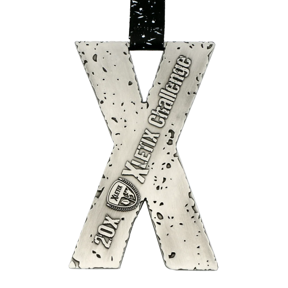 Se trata de premios sorprendentes por muchas razones. En primer lugar, la forma. Las medallas recuerdan a la letra “X”, en referencia al nombre de la carrera. Además, cuentan con decoraciones tridimensionales y calados irregulares, que dan carácter a los premios. El conjunto crea una imagen coherente y un diseño perfectamente adaptado al ambiente de la carrera de obstáculos.