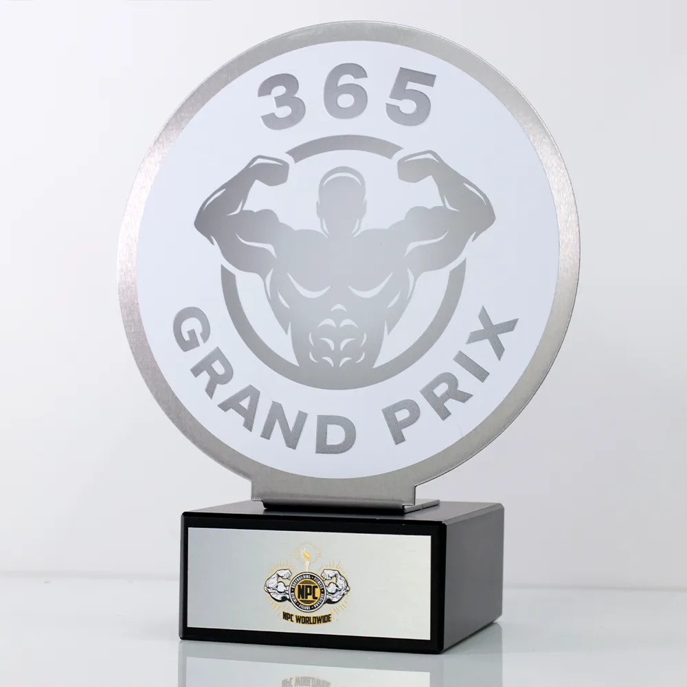Trofeo personalizado creado para la competición de culturismo “365 Grand Prix”. Reconoce a los participantes que lograron los mejores resultados con su fuerza, determinación y físico. La forma redonda y los detalles sutiles hacen que el trofeo destaque. Su diseño sencillo pero llamativo celebra tanto la fuerza como la estética, capturando la esencia de las competiciones de culturismo.