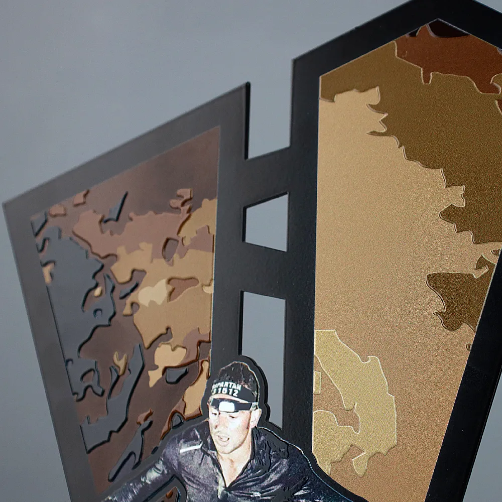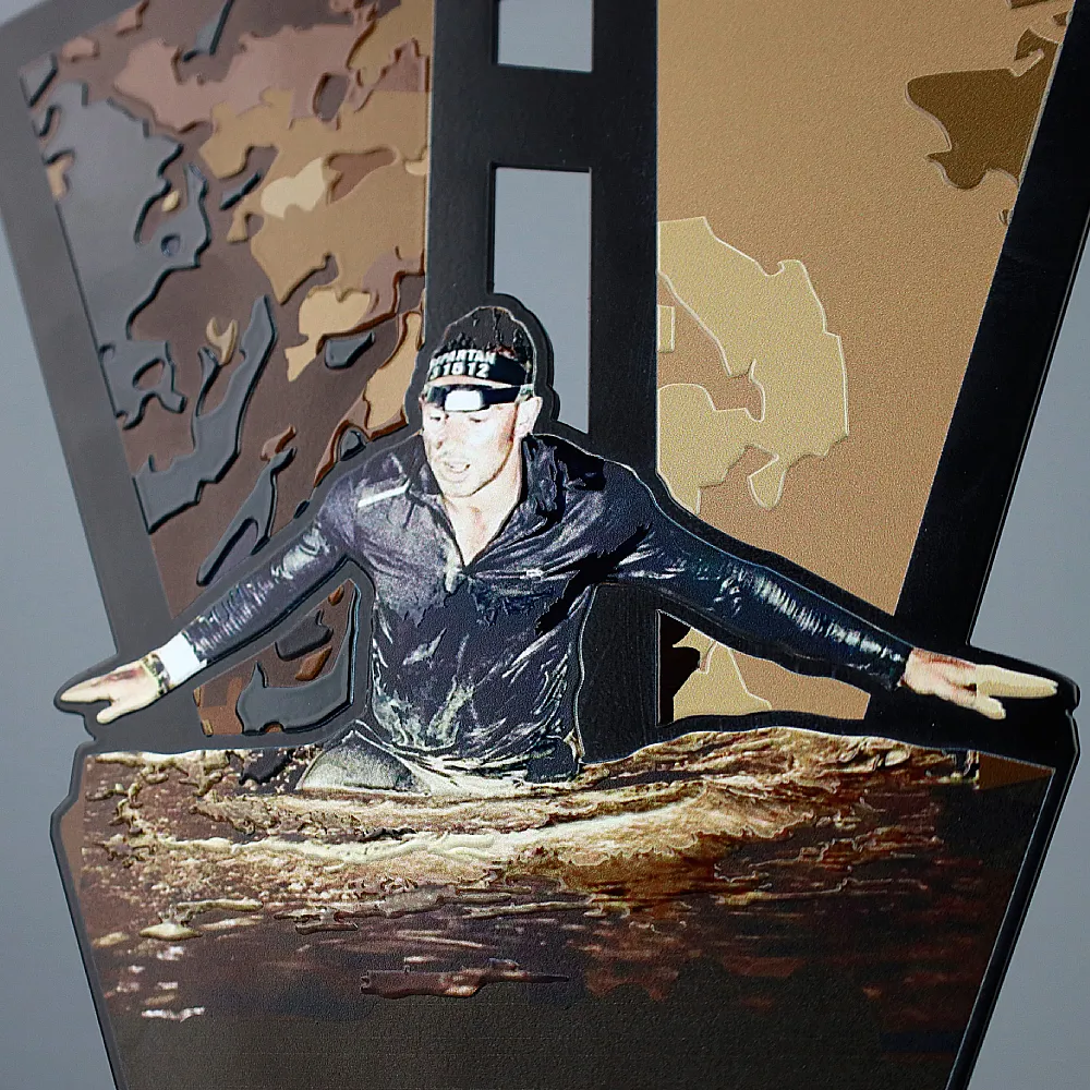 Correr con obstáculos, o OCR, es una disciplina exigente que interesa a corredores experimentados y veteranos. Muy a menudo buscan eventos en los que puedan demostrarse en condiciones realmente difíciles. Uno de estos eventos es La Strazzata OCR, una competición para corredores persistentes. Los ganadores de la carrera recibieron trofeos metálicos conmemorativos en la línea de meta, que fueron producidos por nuestros destacados especialistas de Winmed. Los trofeos OCR estaban hechos de metal cortado con láser. Su forma ascendente le da al conjunto un carácter único, y la impresión UV brillante llama la atención. Además, en la parte central del trofeo colocamos una decoración en forma de gráfico que muestra a un corredor superando un obstáculo. El conjunto se complementa con calados que encajan perfectamente en el diseño del premio.