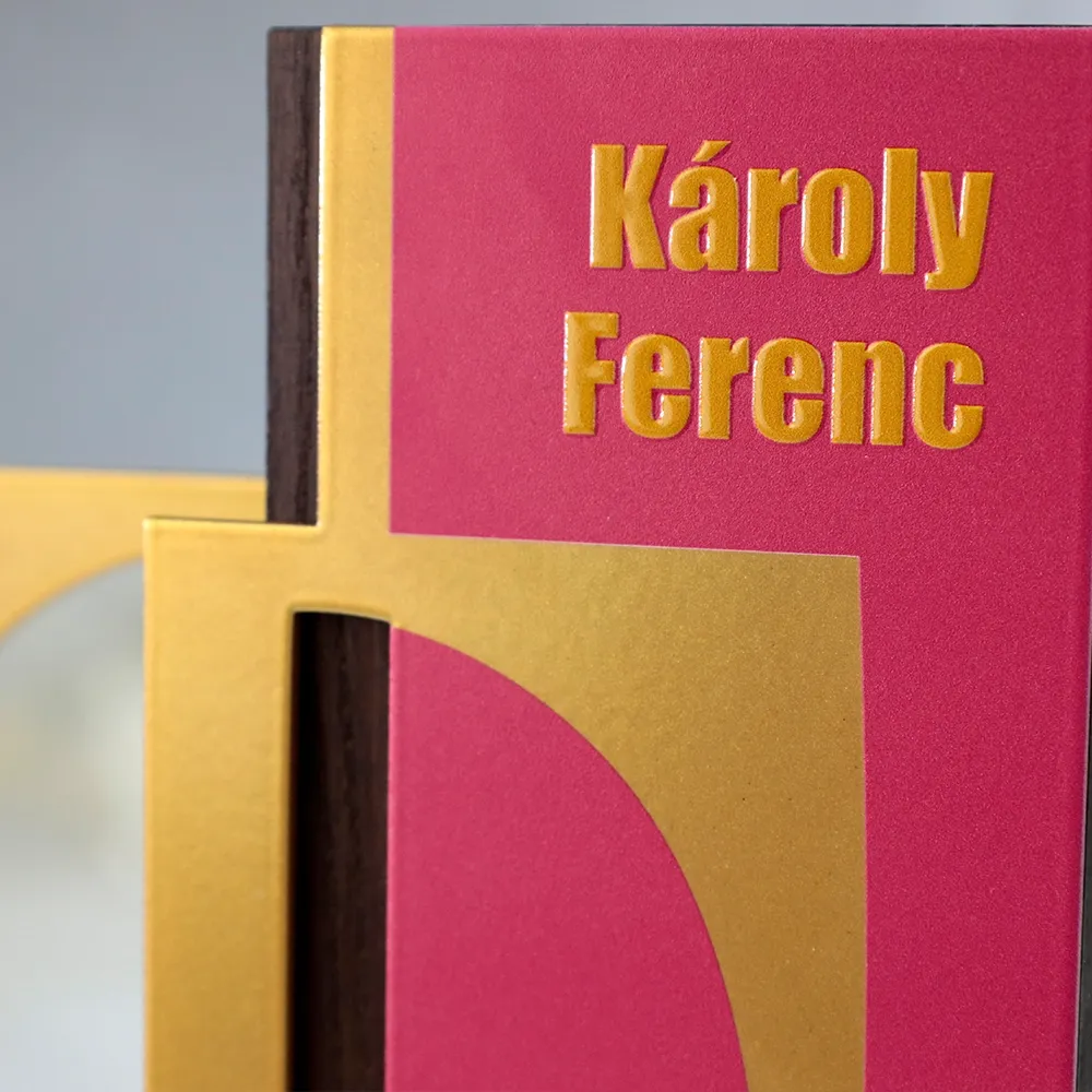 Trofeo personalizado: columna de madera con diseño moderno. La parte principal está hecha de madera, lo que le da un aspecto natural y sólido. En la superficie hay un elemento decorativo de metal en forma de letra "T" que añade singularidad. El trofeo está cubierto con impresión UV colorida, lo que permite decoraciones duraderas con colores intensos.