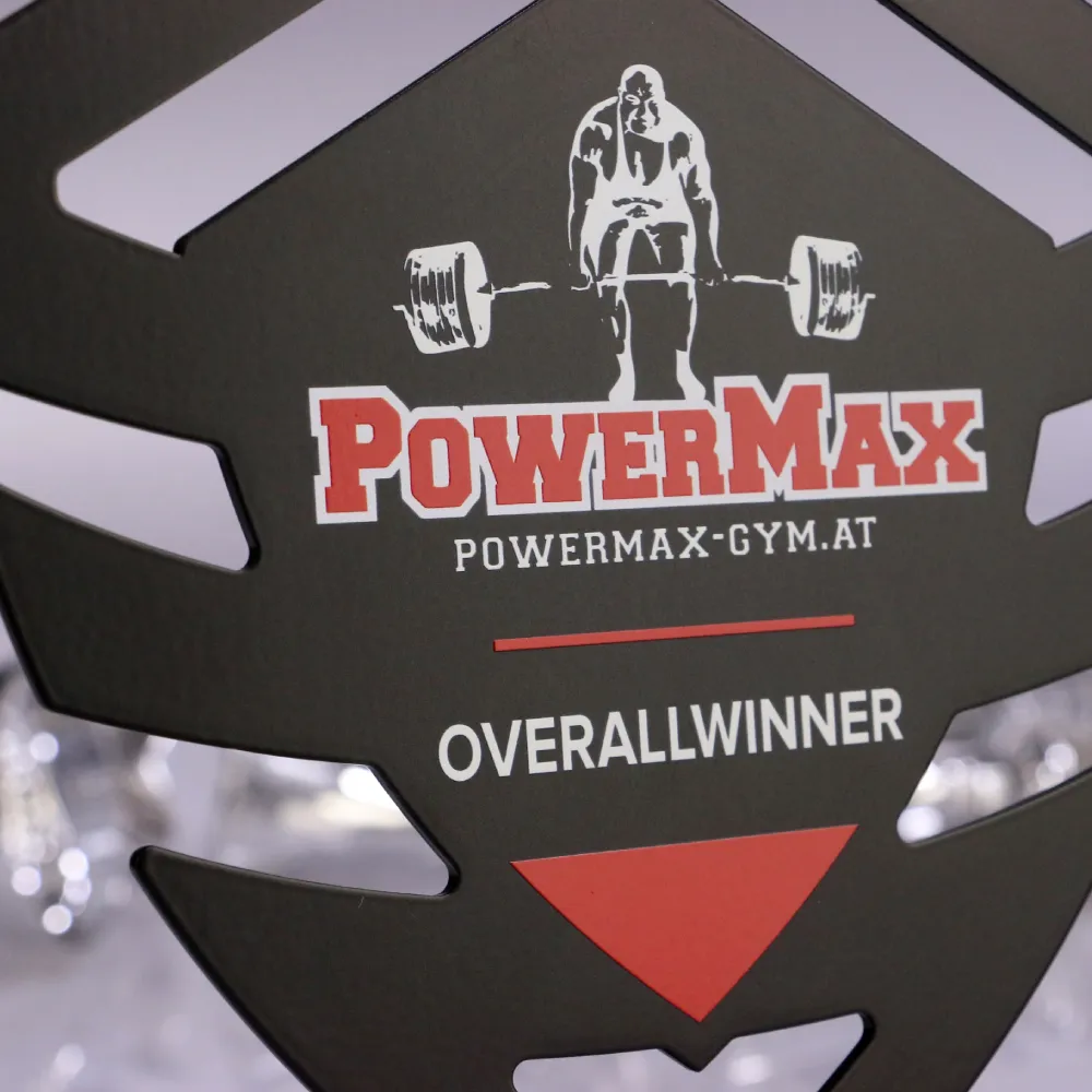 El éxito puede tener muchas formas, y una de ellas es un premio conmemorativo. En Winmed creamos cada día trofeos únicos para homenajear a los mejores deportistas. Un ejemplo de ello es la estatuilla que preparamos para la competición Powermax. La fabricamos a partir de una placa metálica cortada con láser. Gracias a este proceso obtuvimos una forma original y precisa. En la superficie aplicamos una impresión a color con un motivo de halterofilia. Además, todo el trofeo fue recubierto con barniz para resaltar aún más los colores. El resultado es una estatuilla bonita y llamativa.